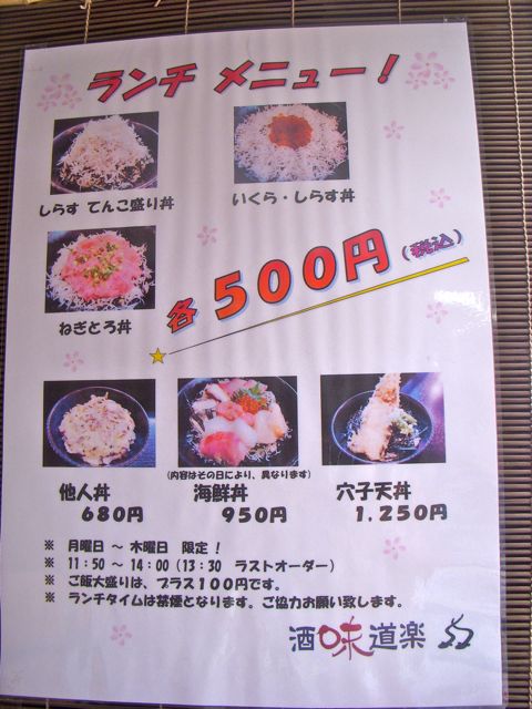まあ、夜は居酒屋なんだけど、昼は海鮮系の丼やってる。
