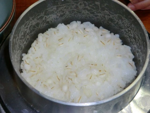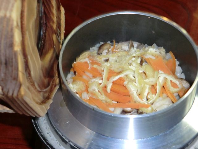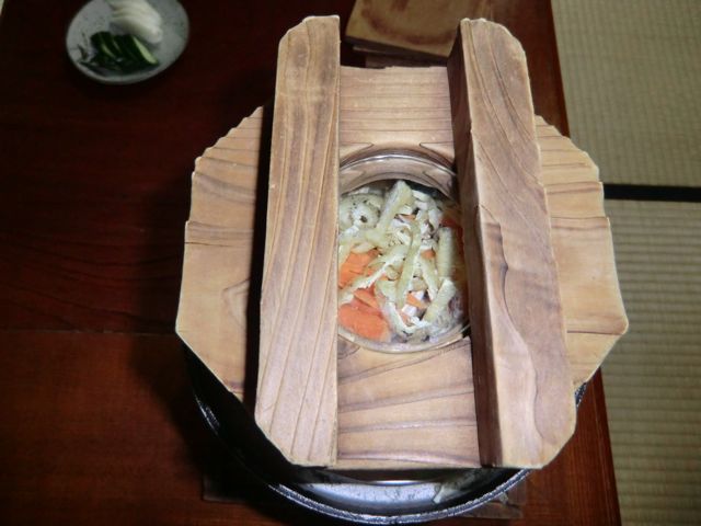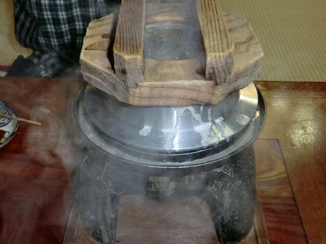 さて、釜飯はそこで炊くんだけど、上がガラス張りになっていて、中の状態がわかる。