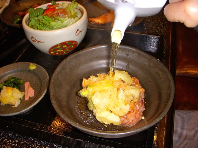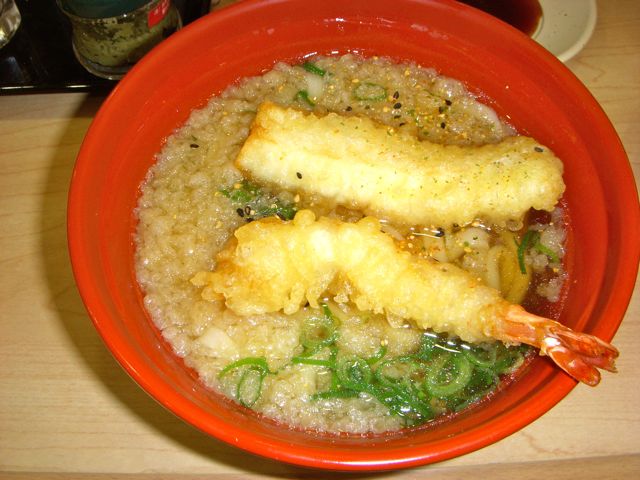 かけうどんに天ぷらを乗せて。