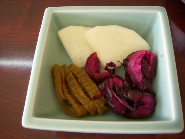 時間がかかるので、最初にお漬物を持って来てくれる。