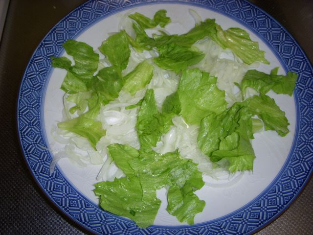 玉ねぎと、レタスを敷いています。