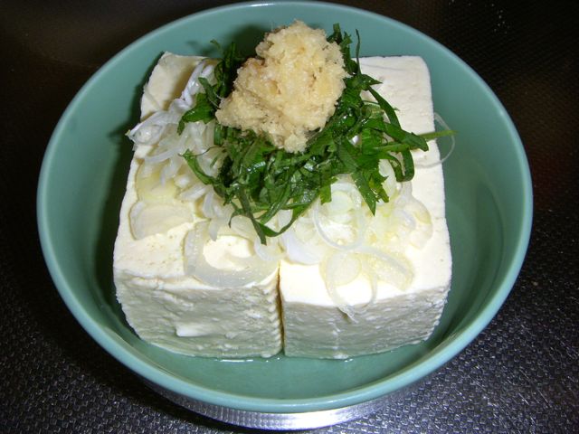 豆腐は箸でわった断面に醤油を注ぐと乗りがいい。
