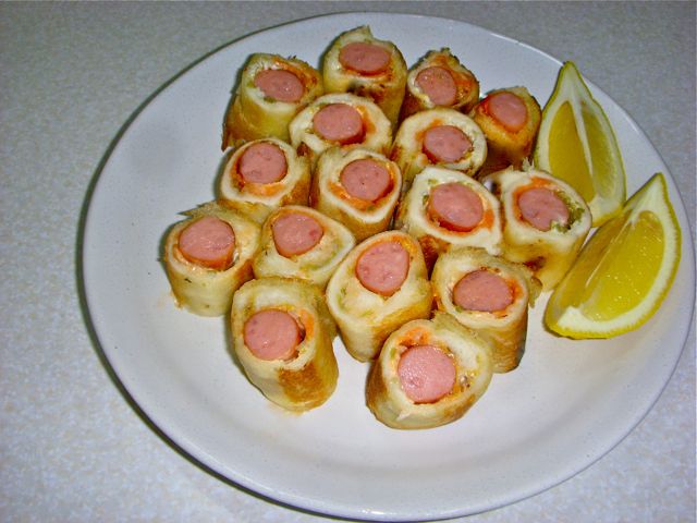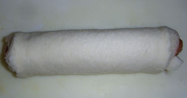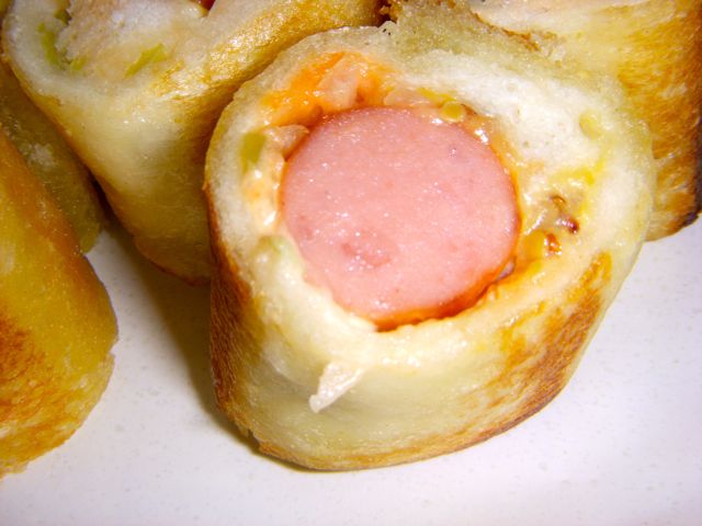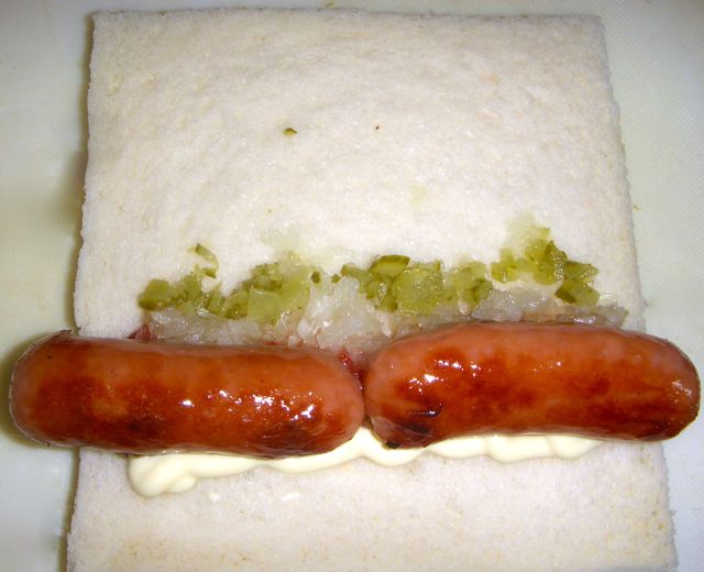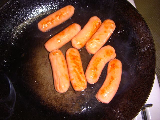 4、ウィンナーをのせる。これは短ウィンナーなので、2本のせた。