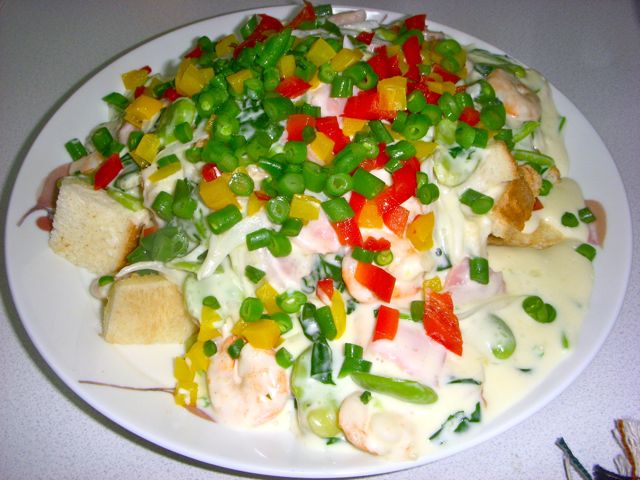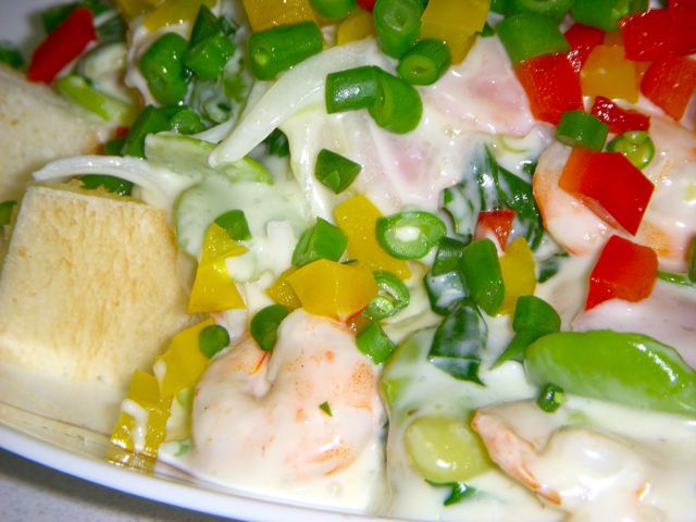 焼いた食パンを切って、その上にホワイトソースをかけただけの簡単なもの。