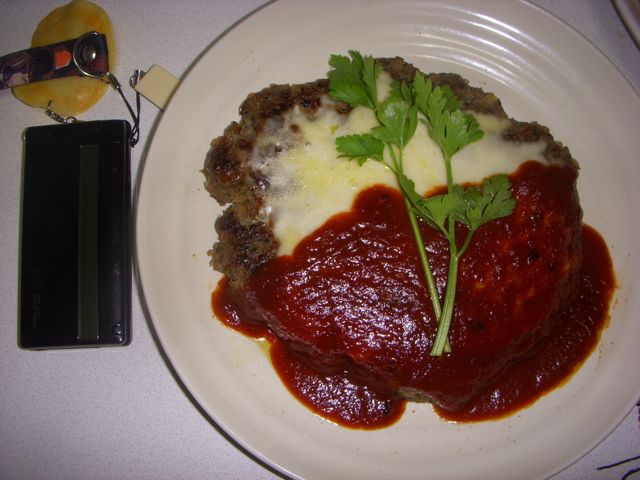 けっこうジャンボ。玉ねぎとほうれん草のみじん切りを肉の量の1/3くらいは使ってるので、やわらかくおいしい。