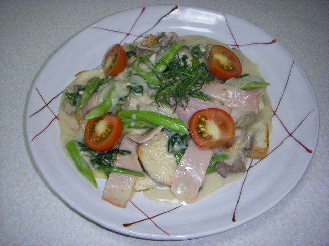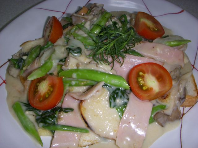 5、先ほどのグラタンソースをパンにかけて出来上がり!