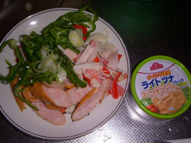 まず、材料を用意する。適当に冷蔵庫にあるもんで。