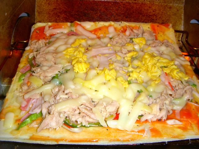 余った玉子は焼いちゃってピゼに乗せちゃってね。