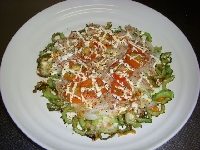 湯がいて薄切りにしたゴーヤを冷やし、すり下ろししょうがと醤油でもっておいしくいただけた。