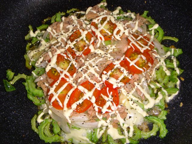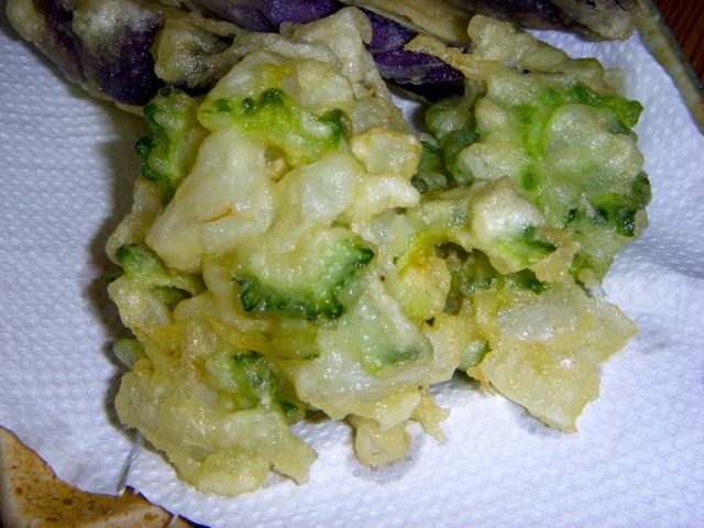 単体だと苦いゴーヤなので、加熱すると甘くなる玉ねぎとかき揚にするとおいしい。