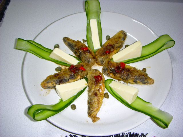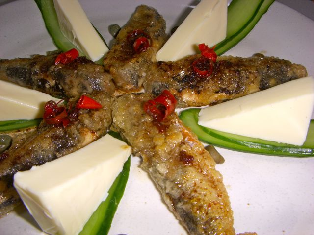 ★オイルサーディンのムニエル、バルサミコソースかけ