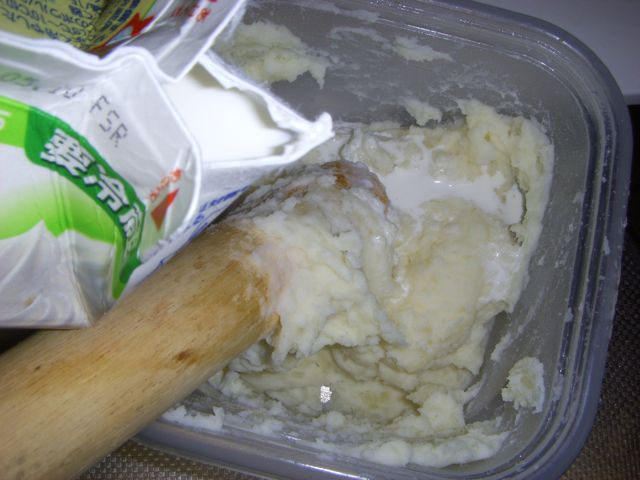 水気を切ってそのまま、マッシャーなどで押しつぶす。