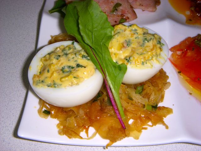 ★たまごのファルシーと、ザワークラフトのバター醤油焼
