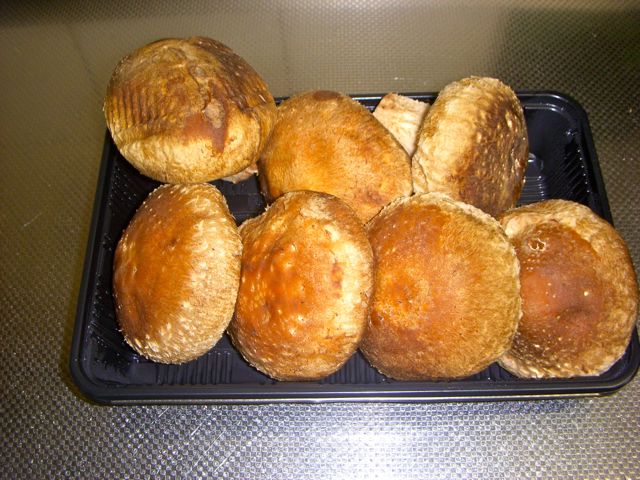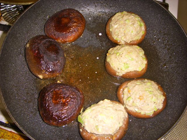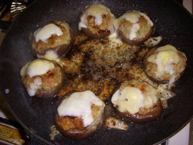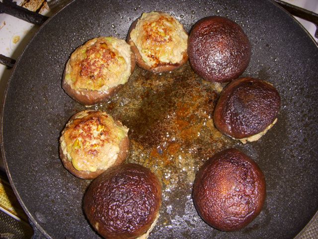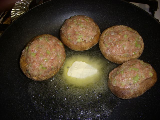 5、傘を下にして、バターで焼いていく。火加減は焦げ付かないように中火で。