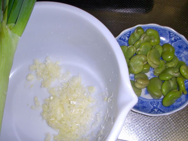 今回は長ネギを使い、余り物のそら豆を刻んで入れた。