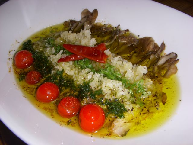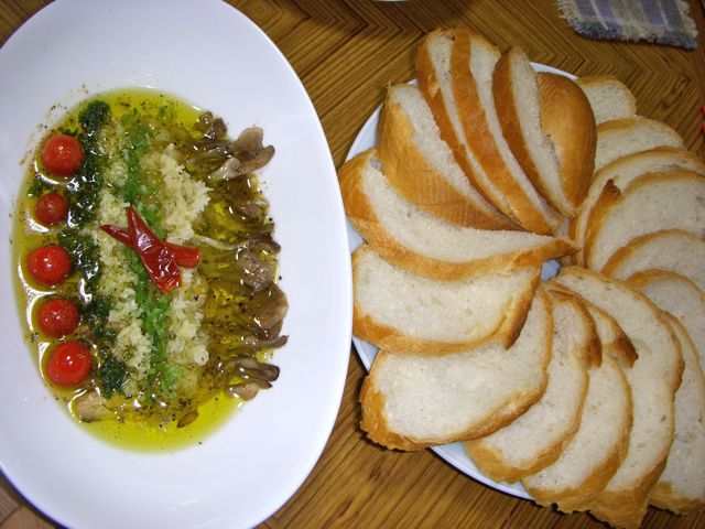 オリーブオイルをたっぷりバケットにつけて食べる。