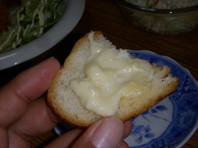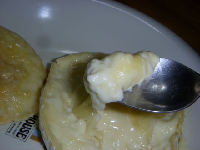 とろけたチーズをバケットに縫って食べる…すごくおいしい!