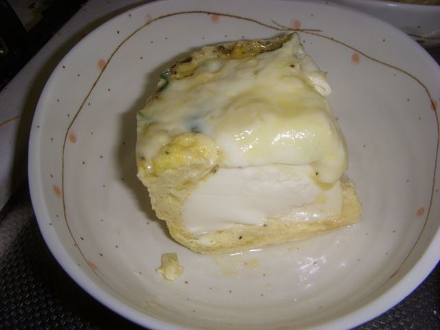 その上にとろけるチーズを乗せ蓋をしてレンジにかけて固める。