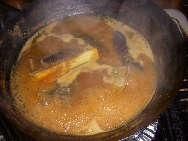 味噌と酒、砂糖、みりんで煮ました。