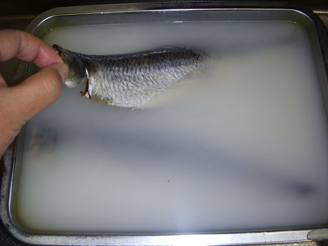 半生だったので、まずは1時間ぐらい漬けたのだが、身がやわらかくなっていた。