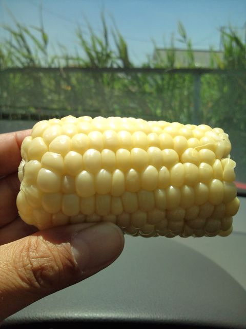 この前買い物の時に農協へ行ったら、茹でた白いとうもろこしが売っていた。