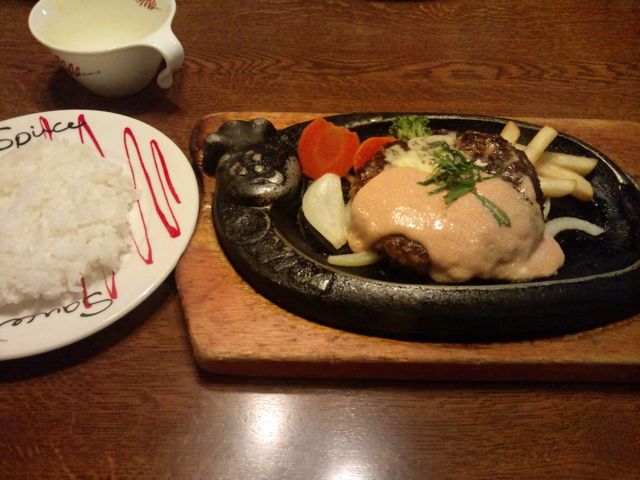 この日、温玉とろとろタルタルハンバーグってのがセットであって、サラダだのよけいなのはいらないからと思ってそれをスープバーセットで注文しようとしたら、なんとセットでないと出せないという。