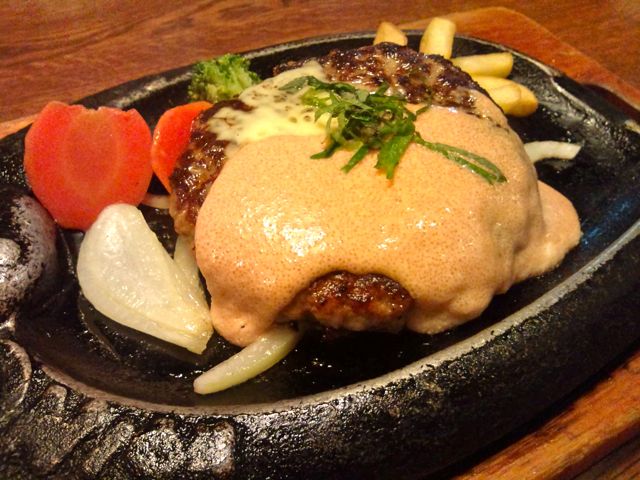 弾丸ハンバーグは、ソースをかけてくれるのはいいが、鉄板があまり熱せられてなく、しかもちょっとかけ過ぎ。